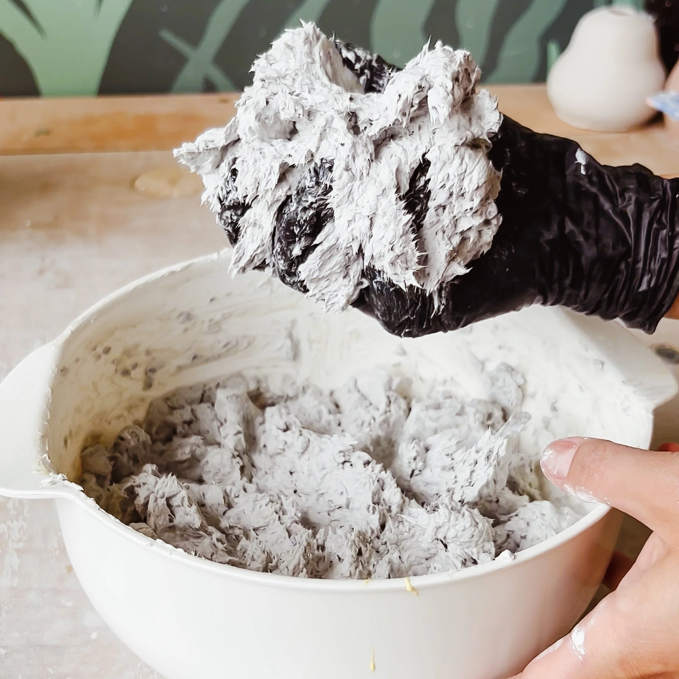 The result? Paper clay! About a year and a half ago, I stumbled across a paper mache clay recipe from Ultimate Paper Mache and thought to myself, “Junk mail is paper…so couldn’t it be incorporated into this?” and the recipe tinkering began. A dozen iterations later, I’ve landed on my perfect, simple paper clay recipe for craft enthusiasts like myself. It’s durable, easy to make (even in a small space), and uses simple ingredients easily found at a hardware store (plus the junk mail is already being sent to you lol).
